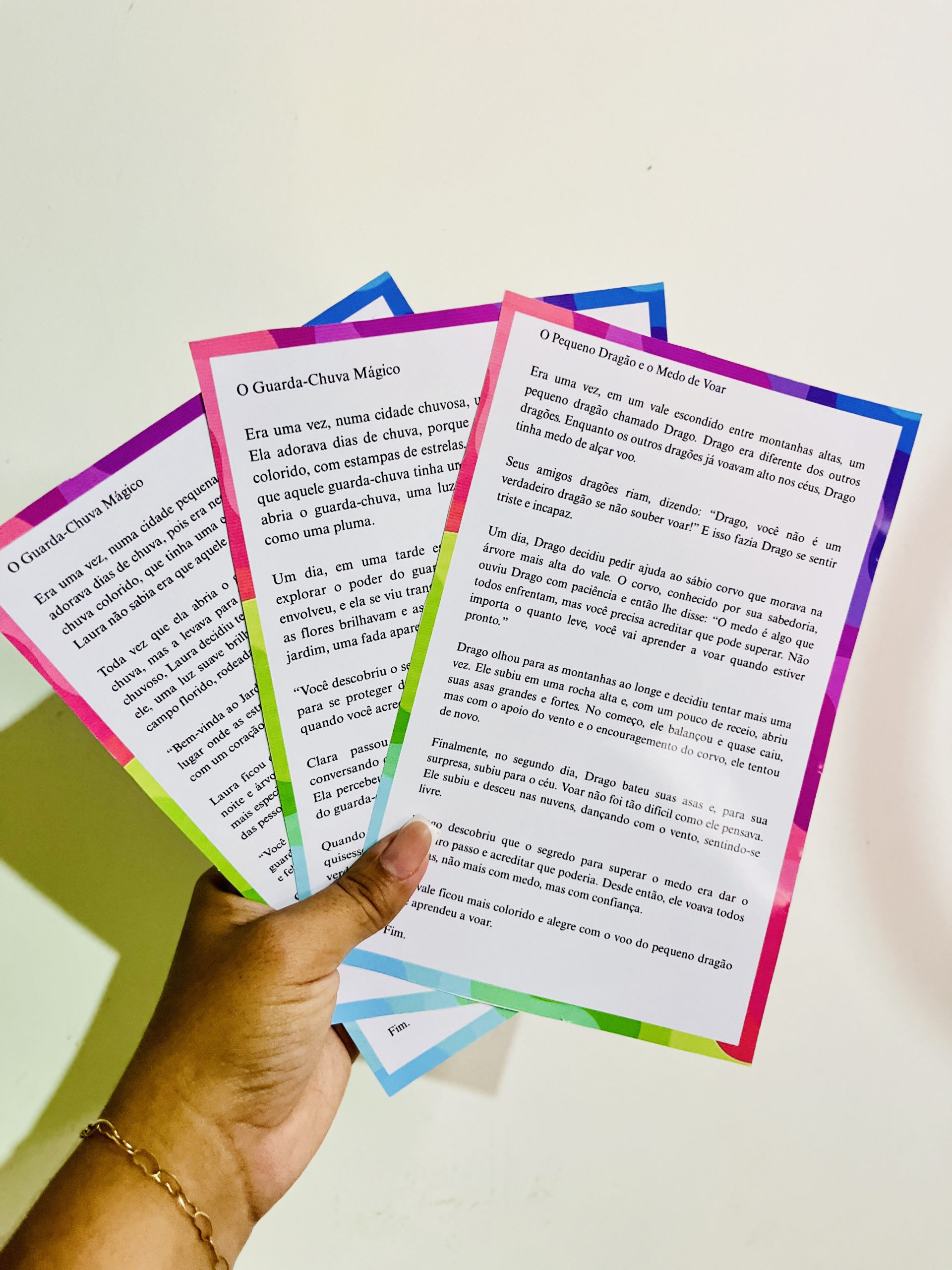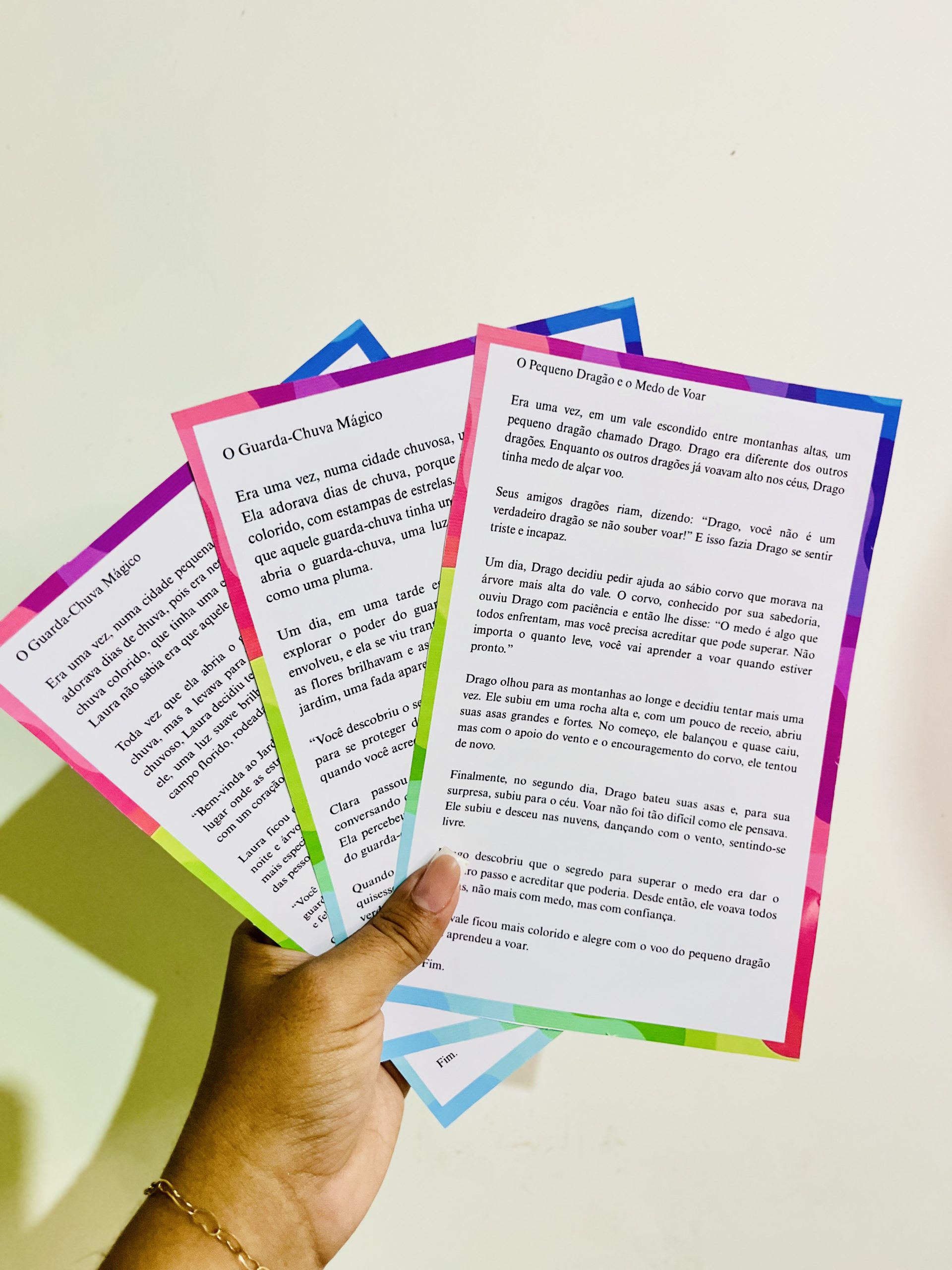 📖 Histórias encantadoras, como Clara e o seu guarda-chuva mágico, que leva os pequenos a um jardim cheio de fantasia