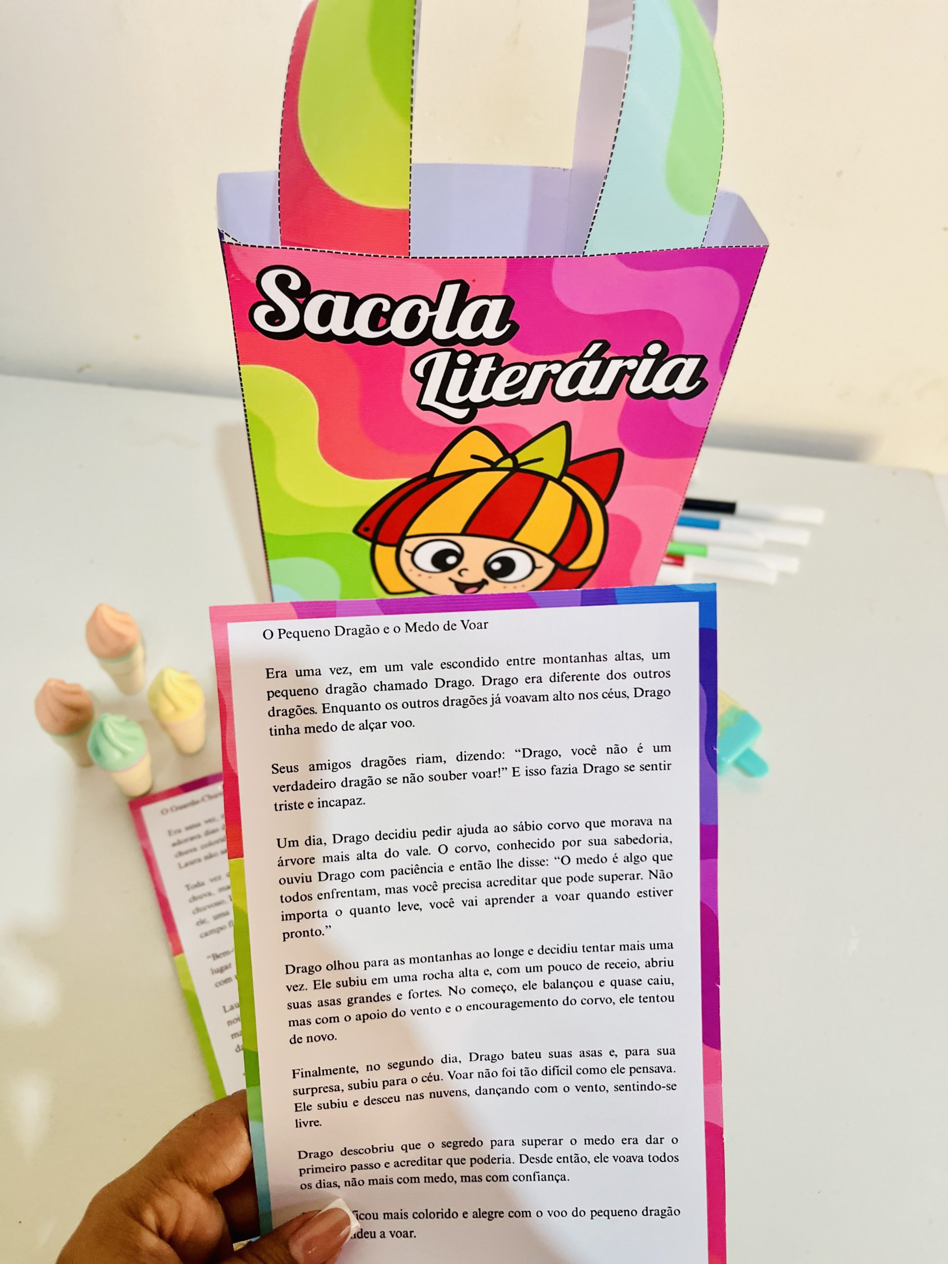 Transforme a hora da leitura em um momento inesquecível! A Sacola Literária Encantada foi criada para envolver as crianças em histórias cheias de magia, criatividade e aprendizado.